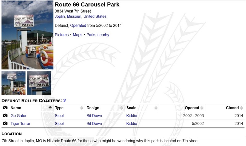 Carousel Park, Joplin, Missouri. They prior went by the name Route 66 Carousel Park.