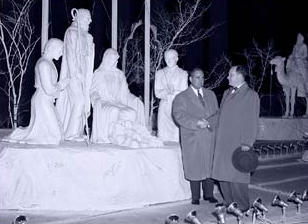 All was bathed in brilliant white light � at least until steadily alternating colors were introduced in 1955 � against a backdrop of classical Greek architecture. Silent Night and other songs of the season blared from loudspeakers 8 a.m.-11 p.m. as spectators drove or walked past.