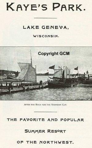 Kayes Park and Resort, Lake Geneva, Wisconsin. I try not to include old 'hotel resorts'. There were thousands in late 1800's and early 1900's. Seems most would always burn down. I include this now as my senses say this was more than just a 'resort hotel'. Also Mackhs Park. Affiliation unknown except both on same advertising material.
