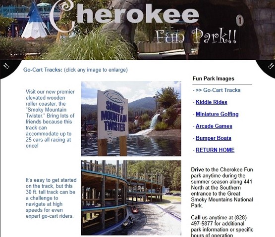 The Cherokee Fun Park in scenic Cherokee North Carolina offers excitement enough for an entire day of action packed family fun. Whether you're in the mood for blazing around the corners of one of our state-of-the-art go-cart tracks, splashing and bumping friends in our gigantic playboat pool, or picking a slower pace by playing through one of our newly renovated miniature golf courses, the Cherokee Fun Park has a great day awaiting your arrival!