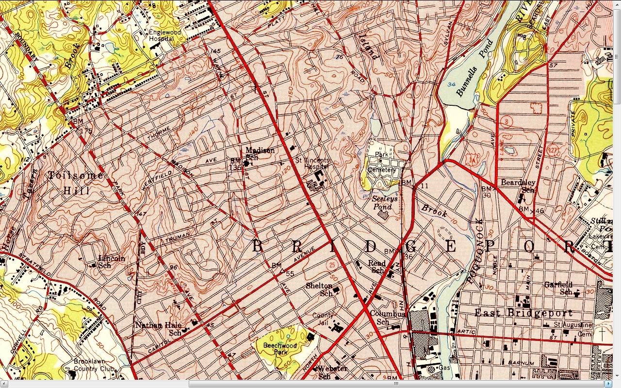 Maps or other information are rare but a line to Steeplechase Island (Pleasure Beach) ? The Trolley company was owned by the New Haven Railroad of which also owned Seaview Railroad. A problem with this railroad as to locations/maps were that the line(s) often were in city streets as a trolley was normally but this was also an industrial railroad.